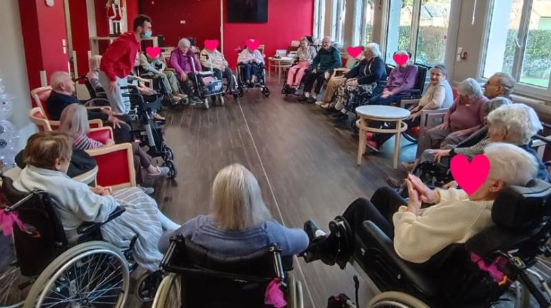 Chaque mercredi, les résidents bénéficient d’une heure de gymnastique douce encadrée par Alexandre, de l’association Siel Bleu. C’est un moment privilégié qui permet à chacun de travailler toutes les parties du corps, sans avoir à quitter sa chaise ou son fauteuil. Une activité accessible à tous, menée dans la bonne humeur et la convivialité.