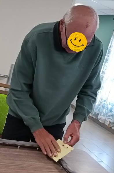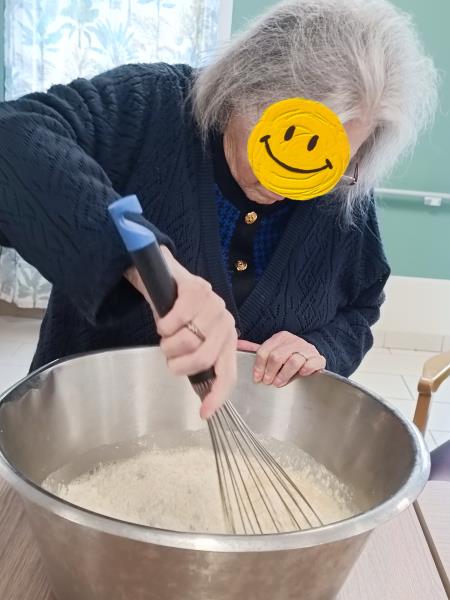 A l'Unité de Soins Adaptés, les matinées sont rythmées par les envies et les talents de chacun. Pendant que certains s'activent à l'atelier bricolage, d'autres s'affairent en cuisine pour préparer une pâte à crêpes maison dans la bonne humeur. Et dans un coin plus calme, au son de la musique zen, quelques résidents savourent un moment de lecture ou participent à des jeux de manipulation afin de stimuler leur motricité fine, leur dextérité et leur concentration . Chacun a trouvé sa place dans cette matinée riche en échanges, en sourires et en fierté.